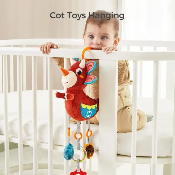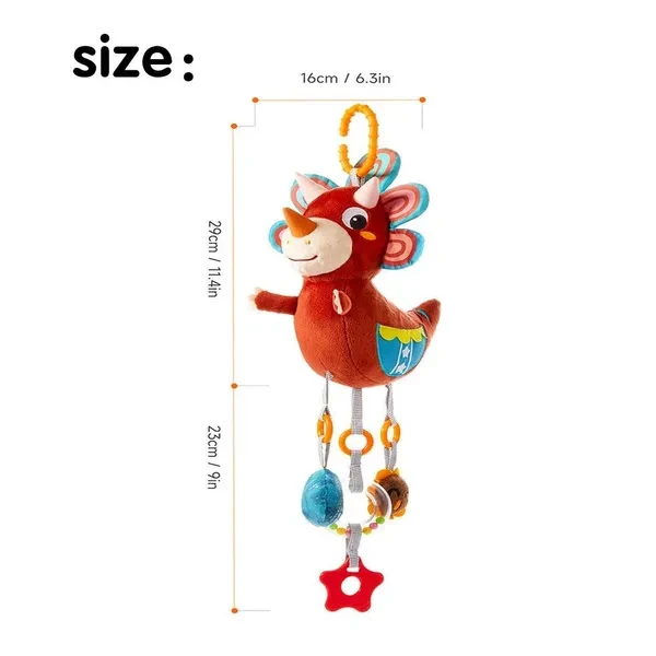 Dinosaur Plush Toy with Wind Chime, Car Seat Stroller Stroller Crib Hanging Toys, Baby Toys for 0 3 6 9 12 Months Baby boy girl Christmas Easter birthday gift