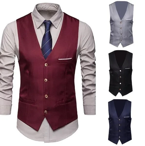 Durable (Only Waistcoat Others Not Included) Plus Size Formal Men Solid Color Suit Vest Single Breasted Business Waistcoat