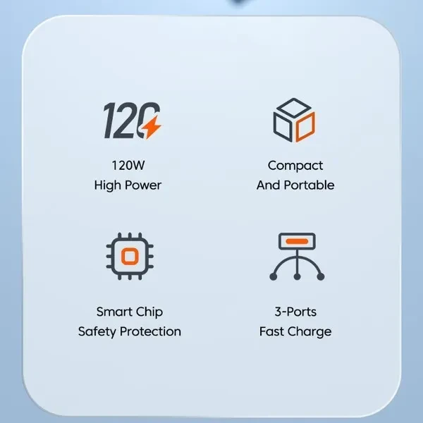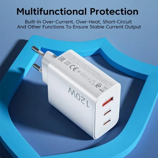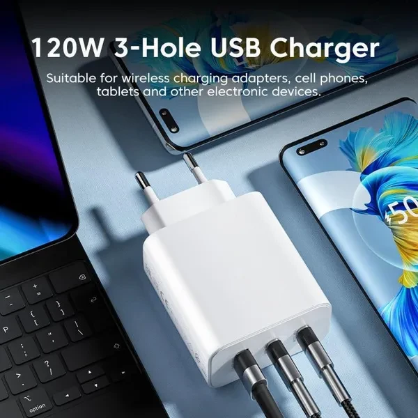 Brand Name : Elough Quality Certification : CCC,CE,ROHS Max. Output Power : 120W Type : Quick charger Power Source : A.C. Source Output Interface : USB,Type C,1 A Port,2 C Ports Origin : Mainland China