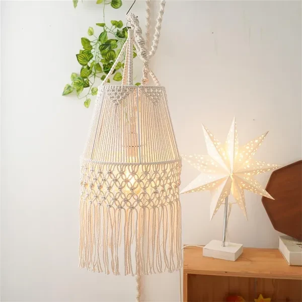 <p>Features: Immerses your living space in the warm glow of Bohemia elegance with our Handmade Macrames Light Shade, a must have for those who cherish artisanal charm and nature. from cotton rope, this lampshade boasts a unique handwoven that diffuses light beautifully, creating inviting atmospheres. for the bohemian at heart, this Macrames chandelier is perfect for individual who appreciate handmade Decoration to infuse their homes with organic sophistication. Transform any room be it a cozy bedroom,or a living area into a haven of Bohemia with easy to install hanging lamp cover. Not just a source of light, this Bohemia Decoration Lampshade serves as focal point, elevating weddings, bohemian themed parties, or simply as an enchanting addition to everyday home Decoration. Specifications: Materials: Cotton Thread, Iron Size: 26x65cm Package Includes: 1PC Macrames Light Shade note: Please allow 1-3mm error due to manual measurement. make sure you not mind before bid. Due to the differences between different monitors, the picture may not reflect the actual of the item. Thank you! </p>