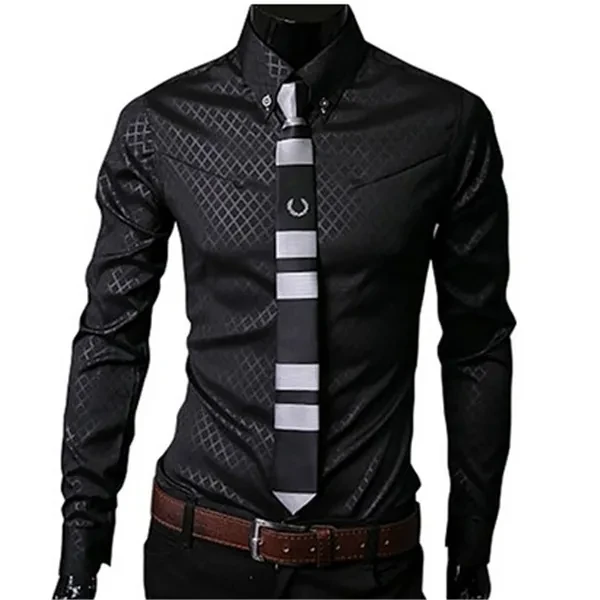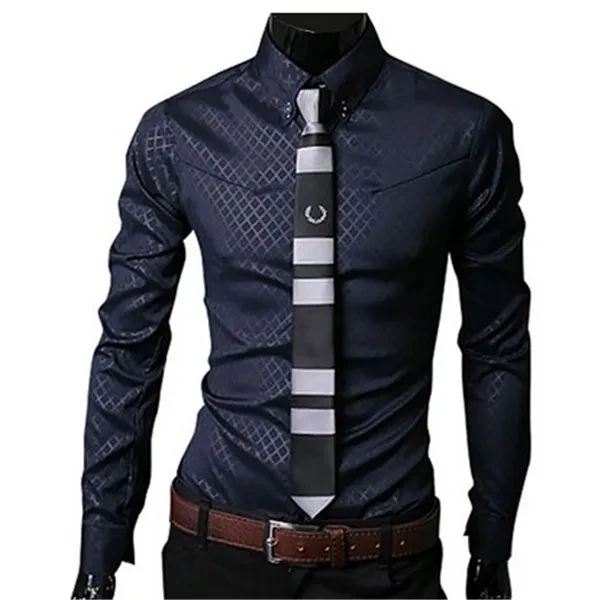 Fashion Men Luxury Business Style Slim Fit Long Sleeve Casual Dress Shirt