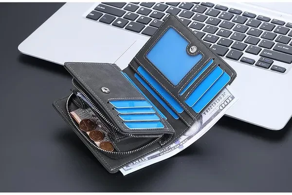 Fashion Men Wallet Pu Leather Credit Card Holder Purse Zipper Wallet Coin
