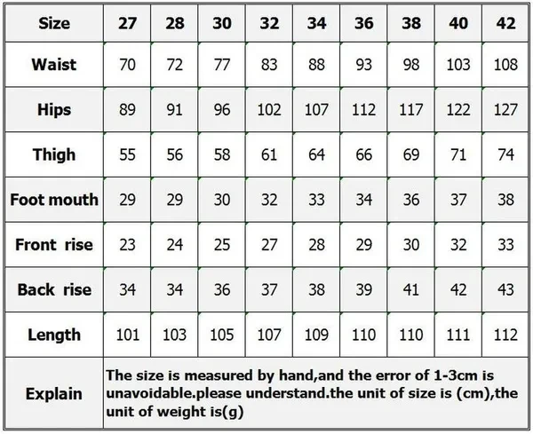 Welcome to our Store! We will provide you the best product and service The Product is 100% New Brand. Made of high quality,very soft and comfortable. Color:Navy blue,Light blue,Medium blue Size:28-42 Please order by Size Chart on the picture to make it fit! ( Please allow 1-3cm differs due to manual measurement, thanks ) Note: 1.Asian Size is usually smaller than US/UK/EU Size, please check the size details carefully to get your fitted size before purchasing, thank you. 2.Colors: As different computers display colors differently, the color of the actual item may vary slightly from the above images 3.Please Contact us in time if you have any problem About the product.We can help you solve most of the troubles,then give you Good service. 4.If you are satisfied with our products,please give us five star to let more people know,thanks. Have a nice Shopping! Package:1* Jeans (Belt not included)