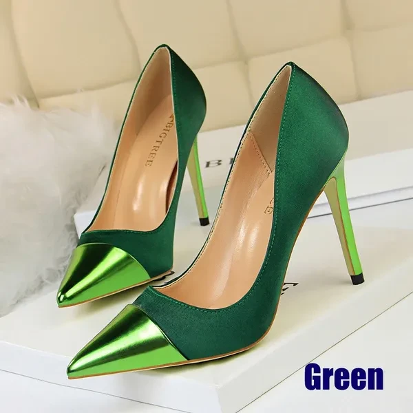 Product Category: High Heel Shoes Color: Red, Green, Black, Blue, Gold, Pink, Grey, Champagne Toe Box: Pointed Toe Size: 34,35,36,37,38,39,40 Shoe Sole Process: Viscose Shoes Sole Material: Rubber Style: European And American Style