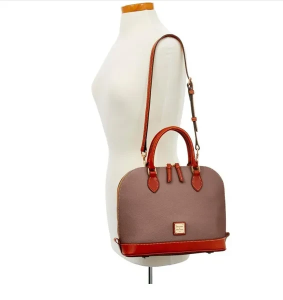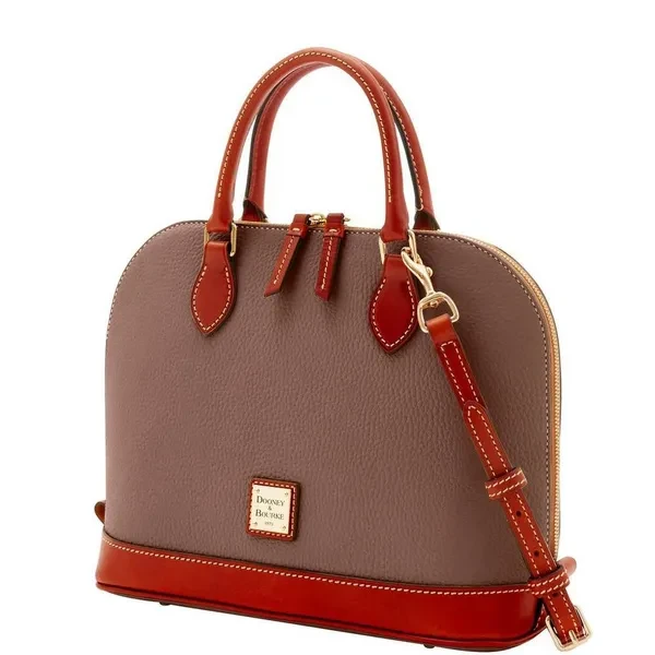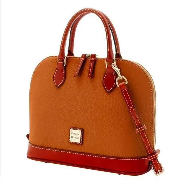 Two inside pockets. One inside zip pocket. Cell phone pocket. Inside key hook. Adjustable shoulder strap. Detachable strap. Handle drop length 4". Strap drop length 15.5". Lined. Feet. Zipper closure. Approximately measures H 9.5" x W 5.25" x L 12" and weighs 1lb 13oz.