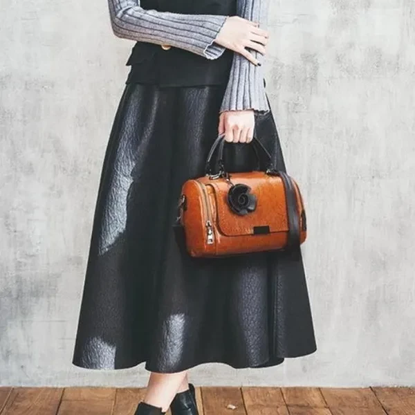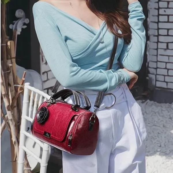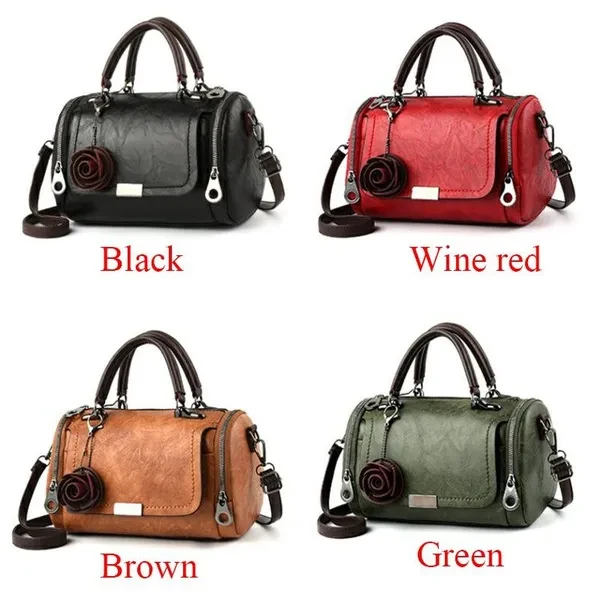 Fashion Women Leather Handbag Vintage Boston Bag Casual Shopping Crossbody Bag