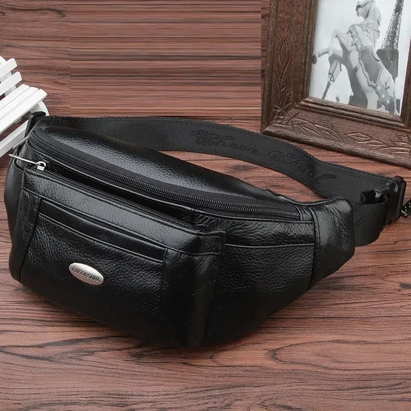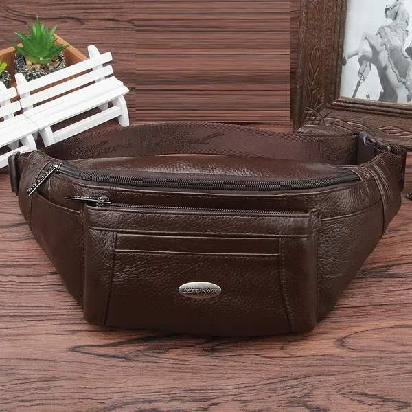 Genuine Leather Waist Fanny Pack Belt Bags for Men Travel Retro Real Cowhide Male Single Messenger Cross body Chest Hip Bum Bag