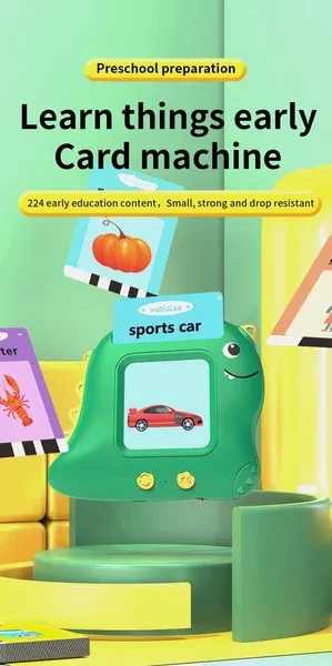 Green Pink Dinosaur Learning Machine for Children, Talking Flash Card, English、Spanish Electronic Early Education Machine