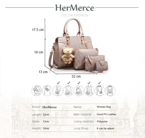 HerMerce Bags Handbags Women Famous Brands Shoulder Bag Female Bags Women Leather Handbags Bags Set 2017 Bolsas Feminina