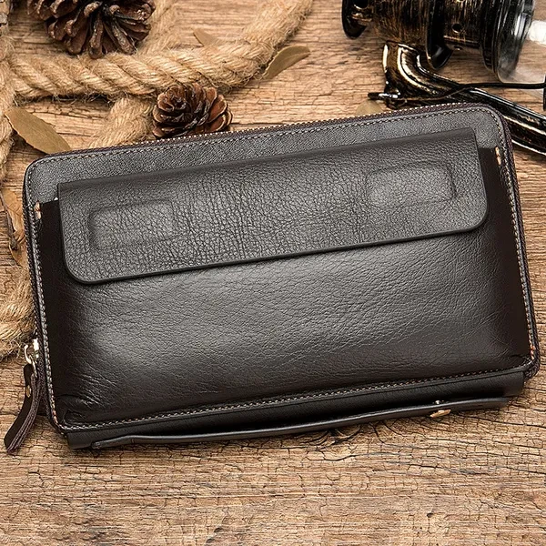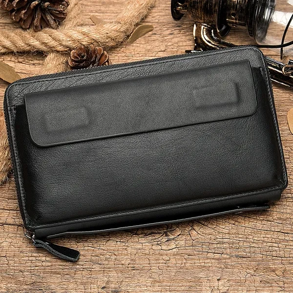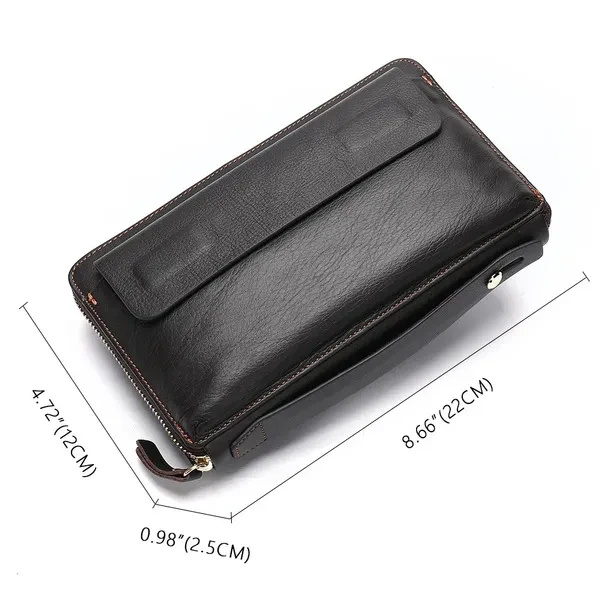 High Quality Soft Genuine Leather Mens Long Cellphone Clutch Wallet Business Purse for Men Card Holder Hand Bag