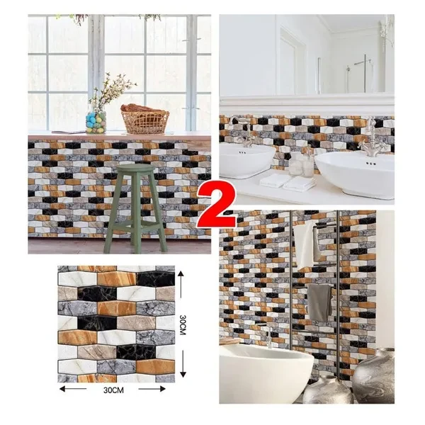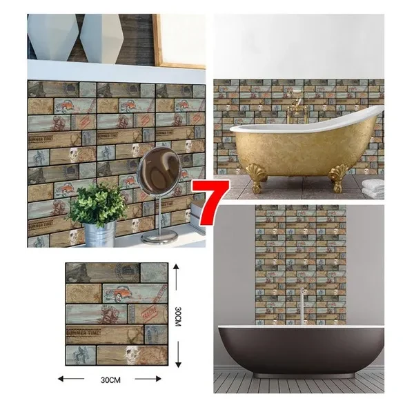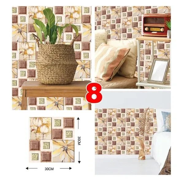 Home Deocr 3D Self-Adhesive Wallpaper DIY Brick Stone Pattern Home Decoration Kitchen Living Room Waterproof Tile Wall Stickers