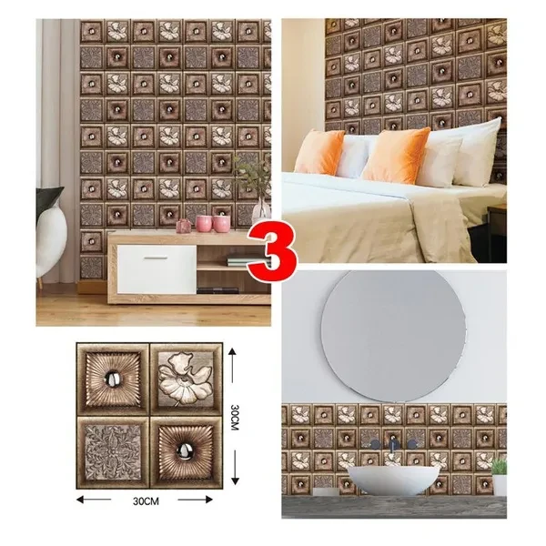 Name: Environmental protection 3D three-dimensional PVC wall sticker Style: simple nordic style Material: high quality ring and PVC material Model: 1,2,3,4,5,6,7,8,9,10 Size: 30cm*30cm/11.8 in* 11.8 in Product features: waterproof, self-adhesive Construction method: self-adhesive, Remove The Protective Film Before Use Applicable to: wood, glass, ceramic tiles, white and gray walls, wallpaper, cement walls. Not suitable for: oil stains, gray walls, uneven walls. Tip: The price of the product is a piece of 30cm*30cm. Please measure the size of the wall to be decorated and purchase the right quantity! Please note: Due to the size limit of the logistics package, please purchase the quantity not to exceed 100 each time. If you need more quantity, please purchase it in multiple times.