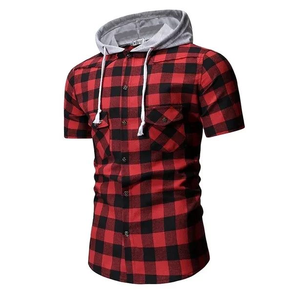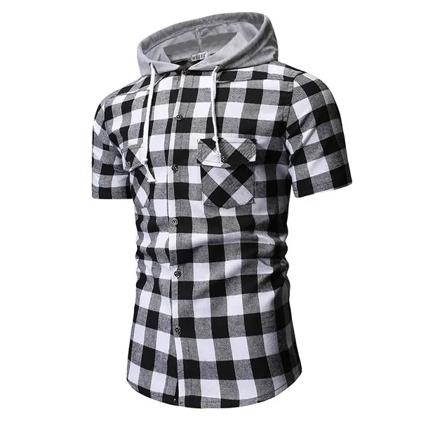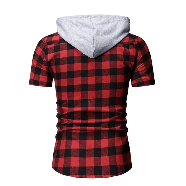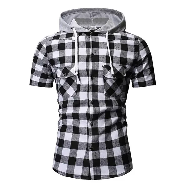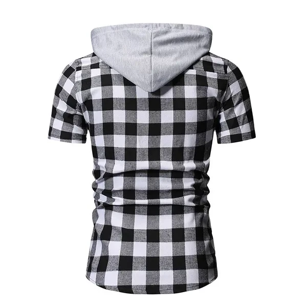 Hoody Blouses Male Casual Summer Men's Fashion Short Sleeve T-Shirt Plaid Hoodie Slim Shirt