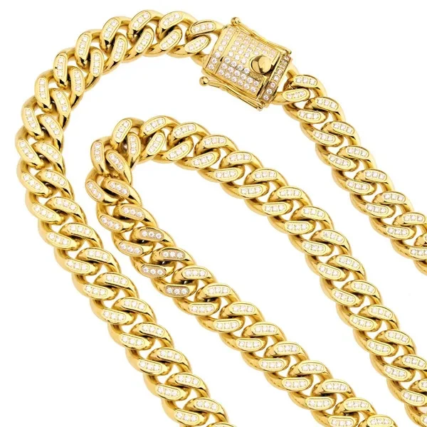 Iced Out Bling Stainless Steel Miami Cuban Chain - 14mm gold