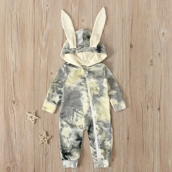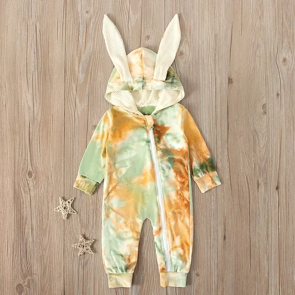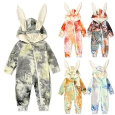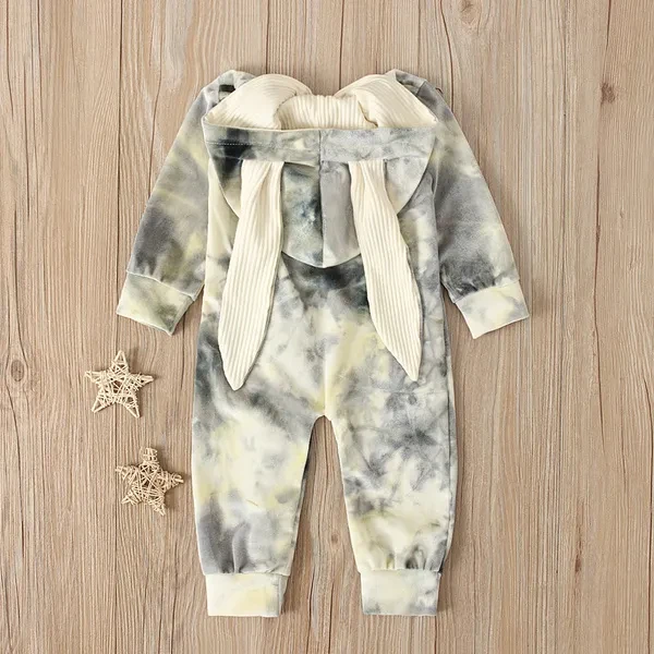 Infant Baby Girl Boy Clothes Cute 3D Bunny Ear Tie Dye Romper Jumpsuit Playsuit Autumn Winter Warm Bebes Rompers