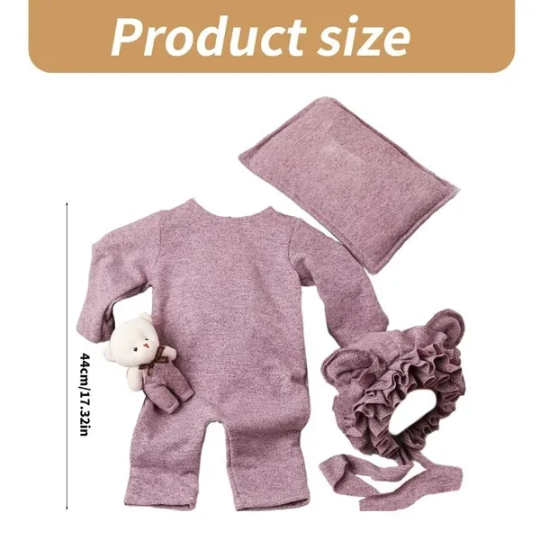 <p>Features: Captures your newborns valuable moments in with our adorable 4pcs Baby Bear Romper and Hat Set, crafted for comfort and cuteness. Produced from soft polyester fabric, the set features breathable material, adjustable bear ear hat, and a Romper with closures for easy dressing and picture excellent poses. Designed for infant girls aged 0-6 months, this set is excellent for parents looking to dress their kids in something special and cozy. Suitable for newborn photography daily wear, or celebratory occasions, this set adds a touch of and warmth to any event. Elevates your baby's wardrobe with this set that blends practicality with playful ensuring your little is the star of any photo opportunity. Specifications: Material: Polyester Clothes length: about 44cm/17.3inch Package Includes: 1xBaby Romper 1xHat 1xPillow 1xBear Toy note: Please allow 1 to 3cm error due to manual measurement, please make sure you do not mind before you bid, Due to the difference between different monitors, the picture may not reflect the actual color of the item. </p>