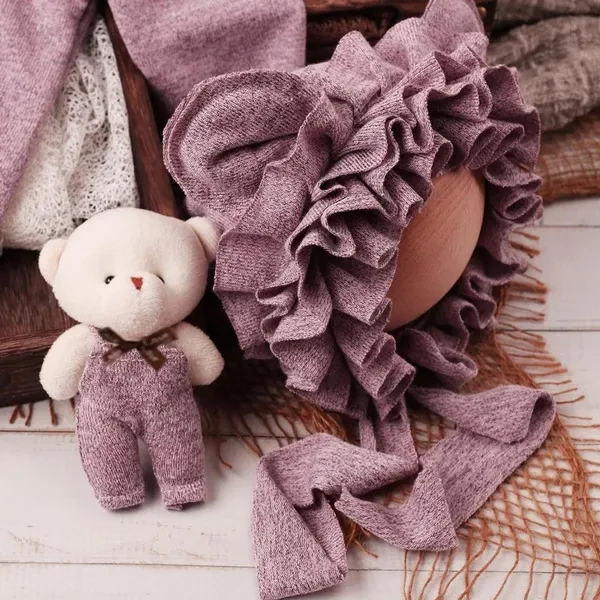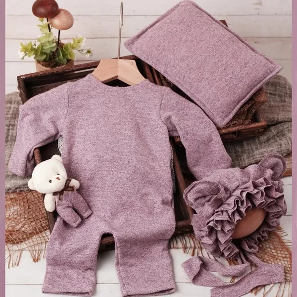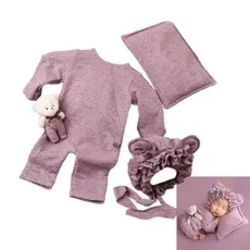Infant Bear Toy with Ears Hat & Jumpsuit Outfit with Photo Props Pillow Soft Polyester Baby Outfit set Newborn Photograph