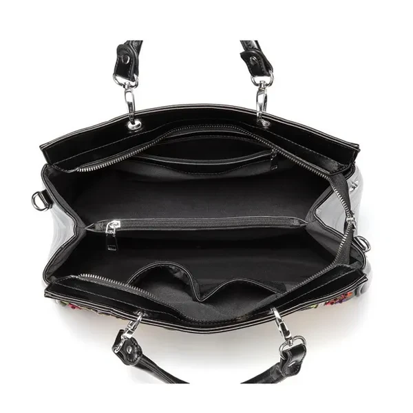 Item Type : Handbags Lining Material : Polyester Gender : Women Decoration : Flowers Decoration : Appliques Decoration : Embroidery Decoration : Button Number of Handles/Straps : Two Interior : Interior Compartment Interior : Interior Zipper Pocket Interior : Cell Phone Pocket Types of bags : Handbags & Crossbody bags Hardness : Soft Closure Type : zipper Occasion : Versatile Main Material : PU Brand Name : iPinee Style : Fashion Handbags Type : Totes Pattern Type : Cartoon Exterior : Silt Pocket Model Number : CYP0012 Shape : Satchels Main Material : PU Leather Size : 38cm(L)X12cm(W)X30cm(H) Colors : Black