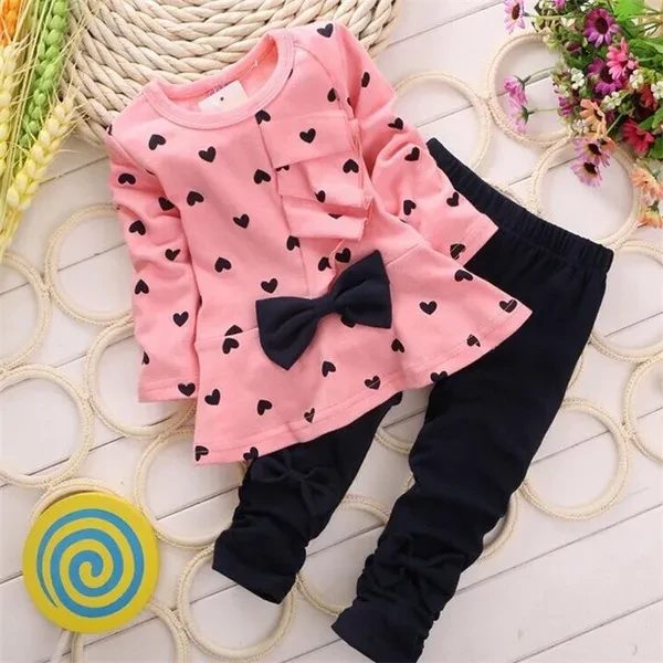 Kids Baby Girl Heart-shaped 2PCS Clothes Outfits Tops Sweater + Pants 1-5 Years