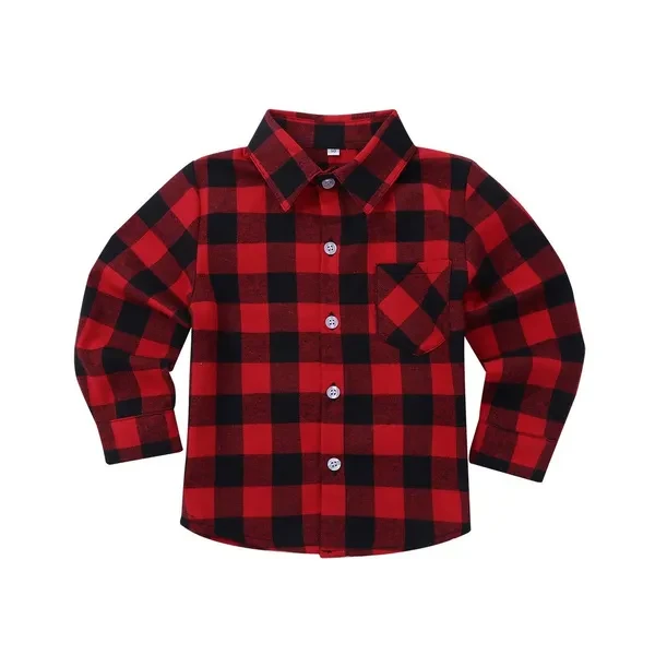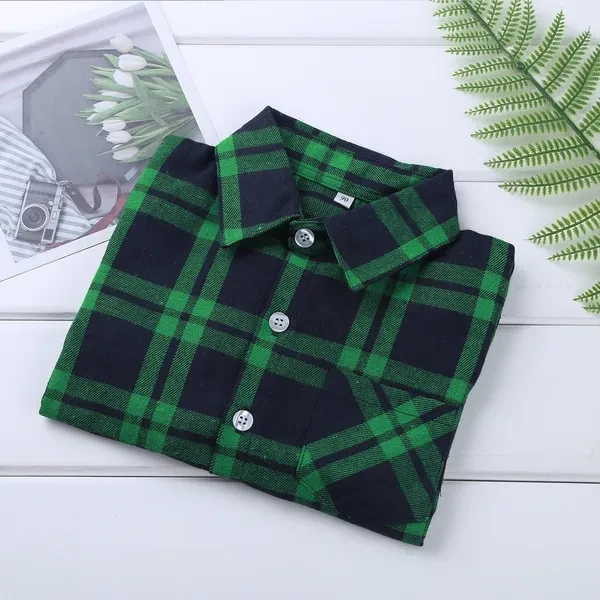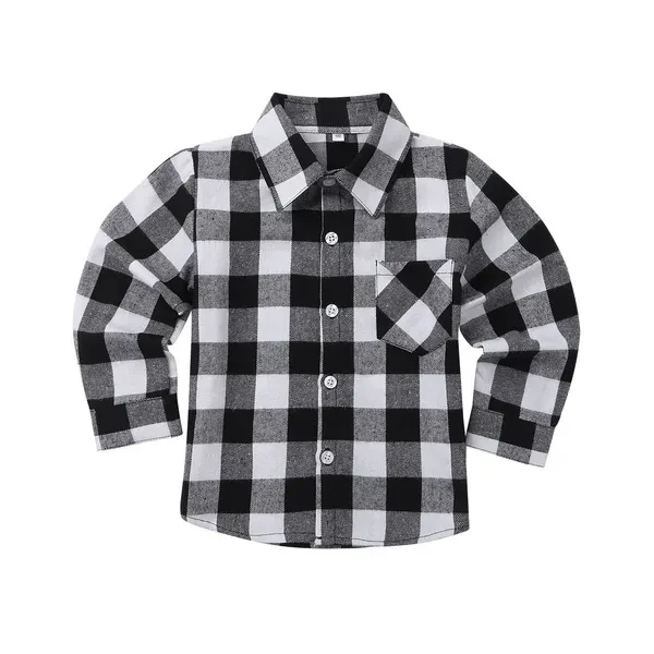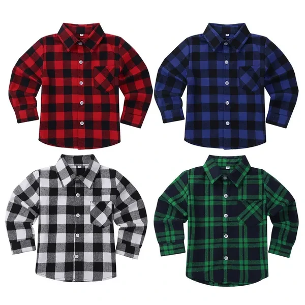 Kids Boys Girls Classic Long Sleeves Lapel Plaid Shirt Birthday Wedding Casual Daily Wear