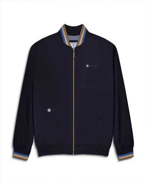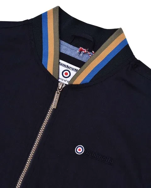 Lambretta Monkey Mens Striped Collar Regular Fit Zipped Bomber Jacket