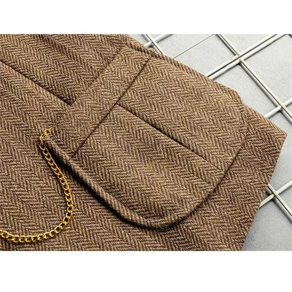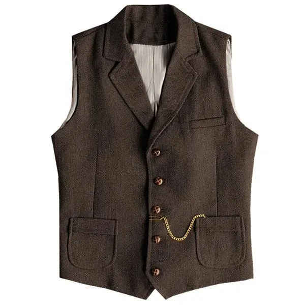 Lapel Men Vest Business Vintage Collar Herringbone Vest