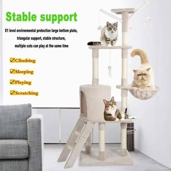 Large Multilevel Cat Tree Scratching Post Kitten Climbing Tower Activity Centre