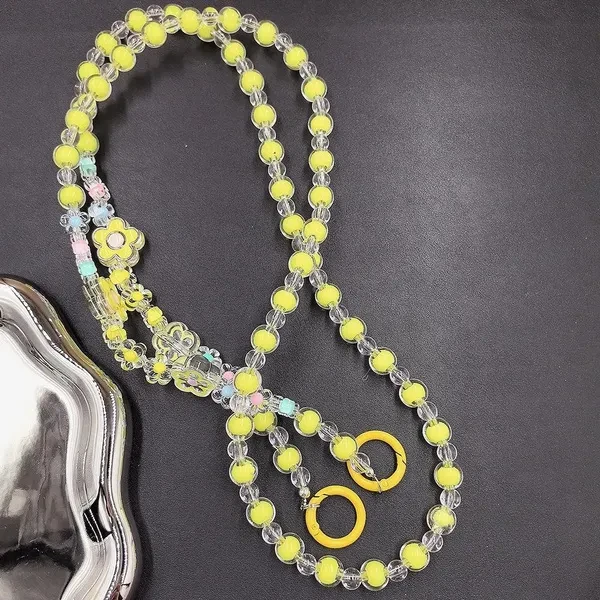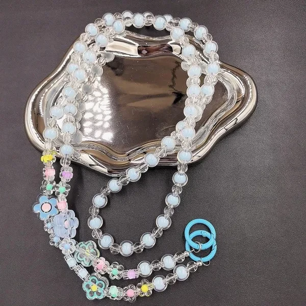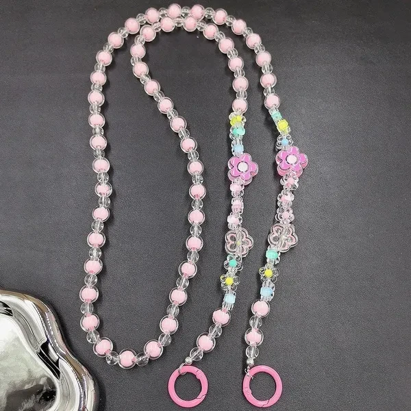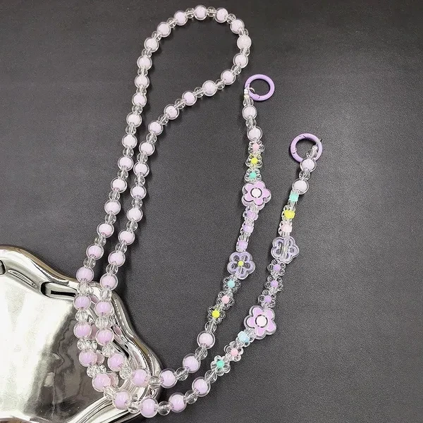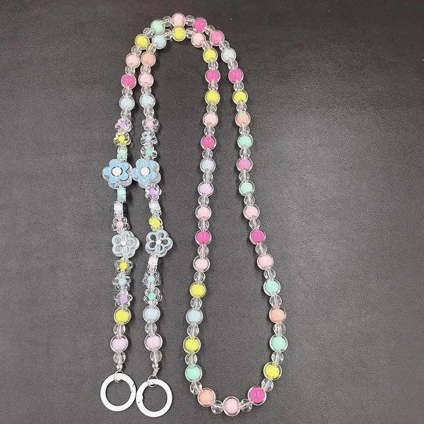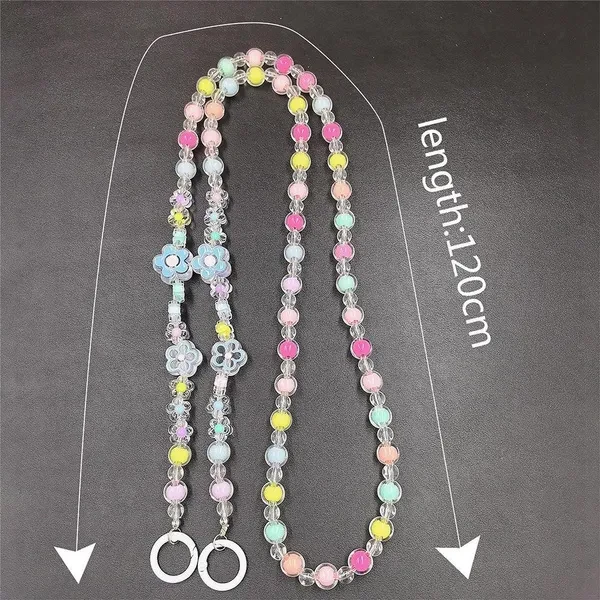 Lovely Multi-flower Mobile Phone Straps Crossbody, Anti-lost Rainbow Color Acrylic Beaded Shoulder Chain Long Mobile Phone Lanyard for Phone Accessories