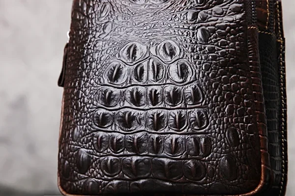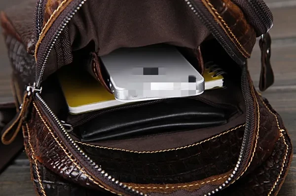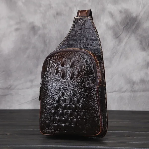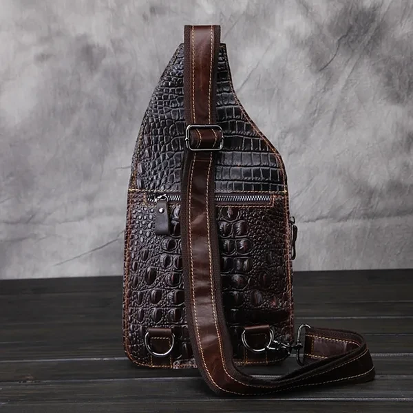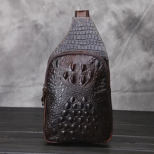 Men Leather Chest Bag Male Single Knapsack Daypack Crocodile Pattern Cowhide Casual Retro Designer Multi-Functional Travel Crossbody Messenger Bags One Shoulder Rucksack Backpack
