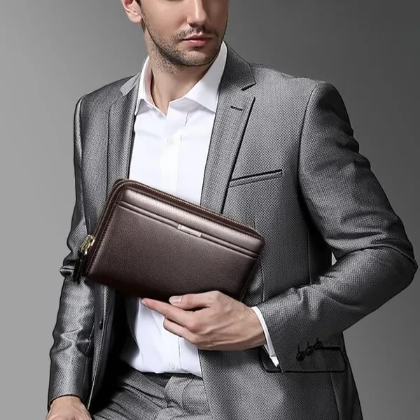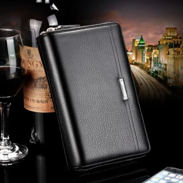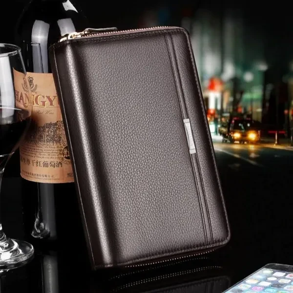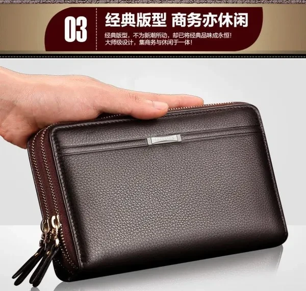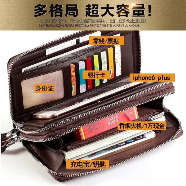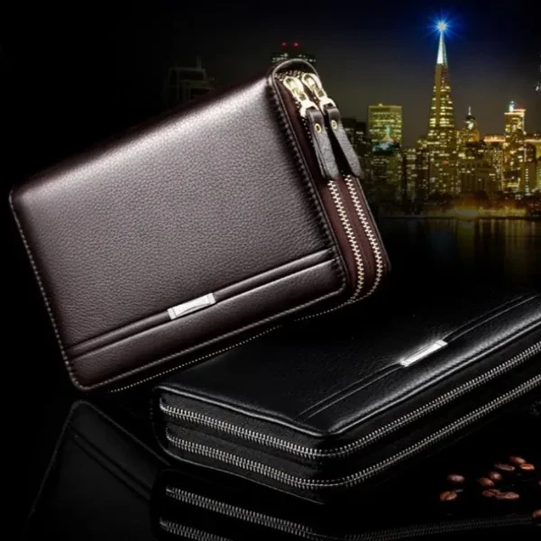 Men Long Wallets PU Leather Multi-cards Holders Double Zippers Purses Clutch Wallets Solid Color Phone Bags Men Wallets