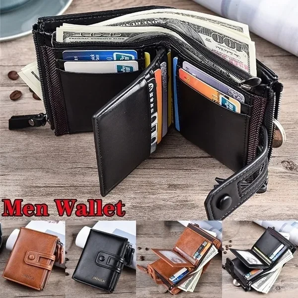 Men Short Leather Wallet Zipper Multi-purse Wallets Large-capacity Multi-card Holder Money Clip