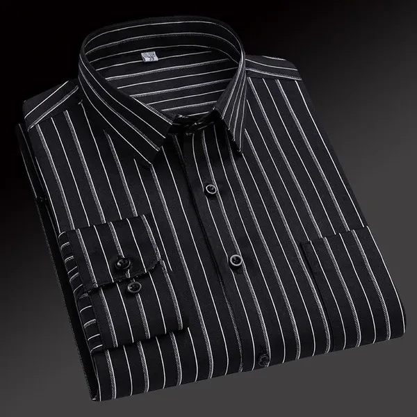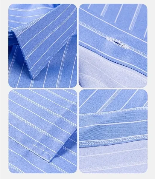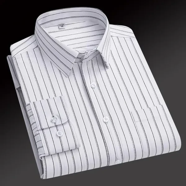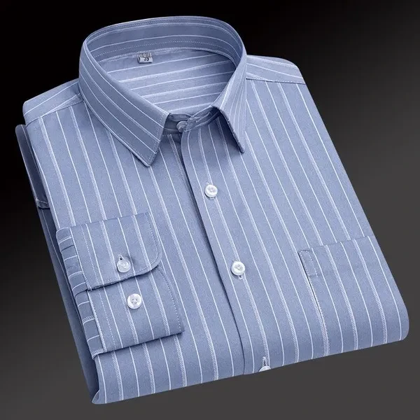 Mens Dress Shirts Formal Business Long Sleeves Striped Elastic Non Iron Shirts