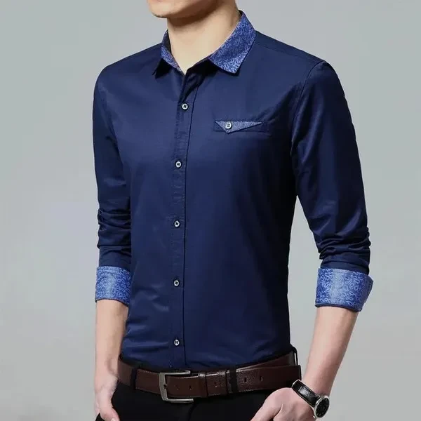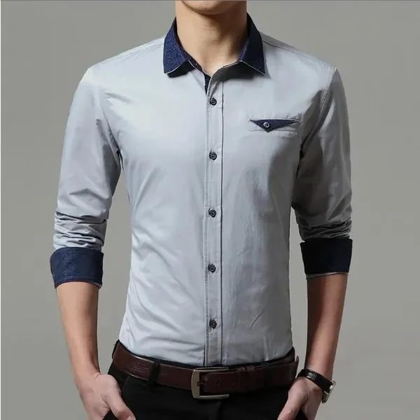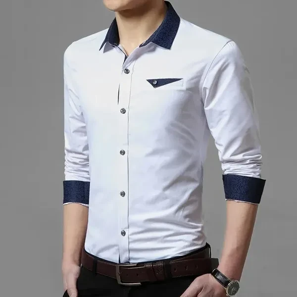 Mens Dress Shirts Long Sleeves Slim Fit Business Multicolor Casual Shirts Tops