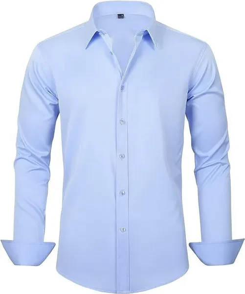 Mens Elastic Non Iron Shirts Formal Business Long Sleeves Casual Dress Shirts