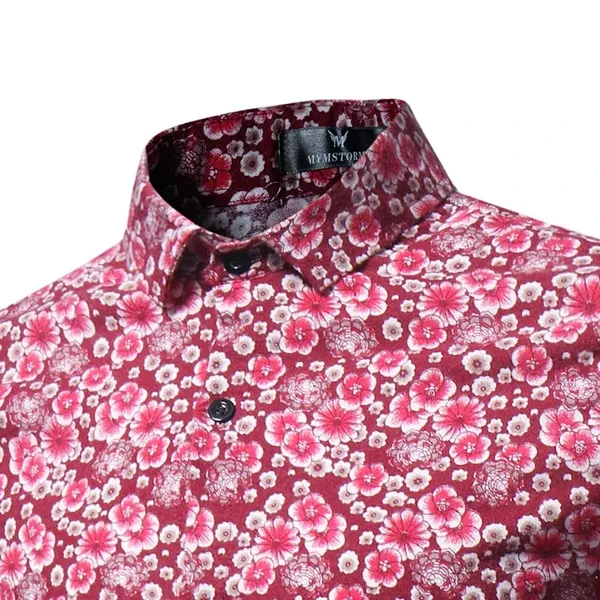 Men's Fashion ARRIVALS MODERN GENTLEMAN Floral Print Slim Fit Long Sleeved Polo Shirt Plus Size