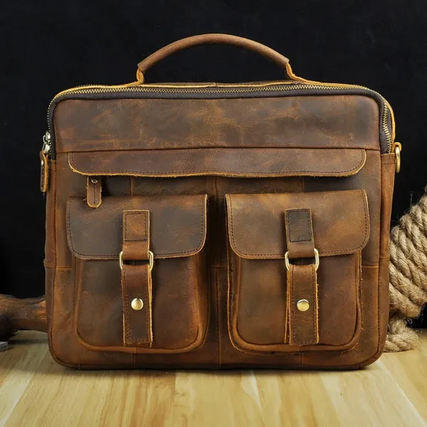 Mens Genuin Leather Cowhide Briefcase Attache Sling Messenger Shoulder Bag 13" Laptop Portfolio Bag