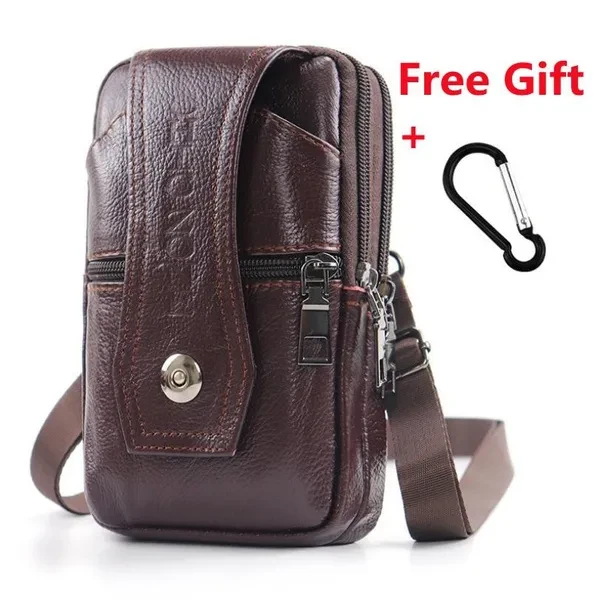 Men's Leather Waist Bag Multifunction Fanny Pack Large Capacity Belt Bag Shoulder Bags Crossbody Bags Multi-layer Buckle Mobile Phone Bag