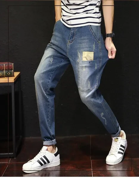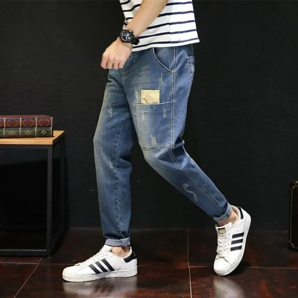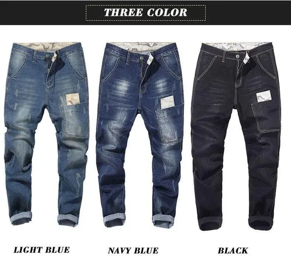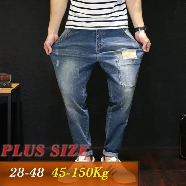 Mens New Fashion Stretch Jeans Haren Loose Trousers Plus Size Cotton Denim pants 28-48