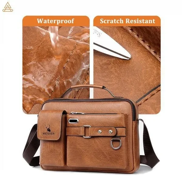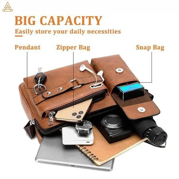 Messenger Bags for Men, Leather Crossbody Bag Waterproof Shoulder Bags Multifunction Briefcase Travel Work Business Handbags With Adjustable Strap