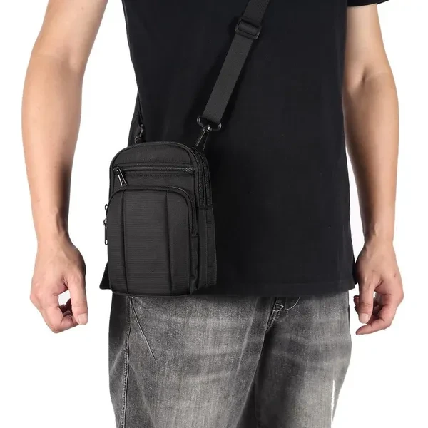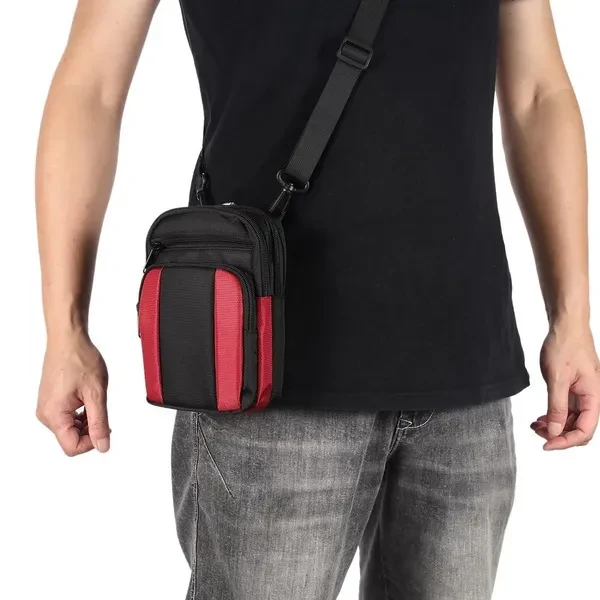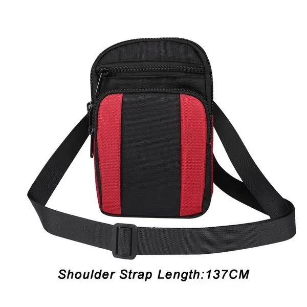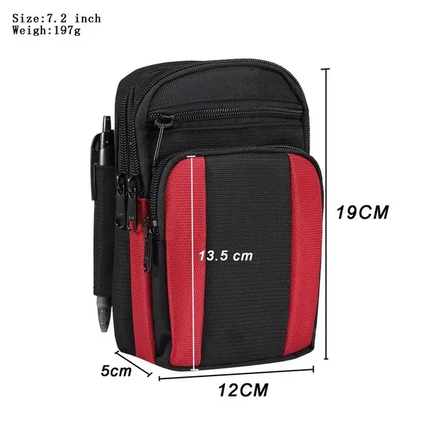 Casual slant shoulder bag mobile phone pouch/sports hanging waist bag, 7.2 inch mobile phone universal, size 12cm*19cm*5cm: 600D nylon fabric, lining: polyester-cotton material, 3 kinds of colour: 3 kinds of colour: black, red, light grey. With shoulder strap and mountaineering buckle The shoulder strap is 137cm in length with adjustable buckle, Convenient for travelling. (Front pocket size 12*13.5CM) Suitable for placing small mobile phones, change, various cards, cigarettes, mobile power, headphone input cable and keys and other small items, is a durable and practical mobile phone bag! Daily leisure outing, a bag of easy and thoughtful solution! Back belt buckle practical size 5cm * 8cm. Suitable for all mobile phones up to 7.2 inches Outdoor Phone Pouch 4 Pockets 4 Zip Wallet Pouch Belt Clip Pouch . Can fit following phones: 1.for iphone 16plus/16pro max/15plus/15pro max/14pro max/14Plus/13pro max/12Pro Max 16/16 Pro/15/15pro/14/14pro/13/13pro/12/12pro/iphone11/11 Pro Max/XS Max/XR/8P/7P/6P,etc. 2.for Samsung Galaxy s24 ultra/s23 ultra/s22 ultra/s21 ultra/s24+/s23+/s22+/s21+/S23 FE/s20 ultra/s20+/note22ultra/Note 20 /note20 ultra/A55/A53/A35/A25/A15/A32/A22/A12/A71/A70/M51/A70S/A71 5G/A51 5G/A80 /A90/A20S/ A34/A14/A13/A22/A21/A20/A30/A54/A51/A50/A50S/A60/M31S/M30S,etc. 3.for Huawei honor 50pro/50se/honor 50/honor Magic4/p60/p60pro/mate60pro/mate60/mate50/mate40pro/mate40/p40lite/p40/p50/p50pro/p40pro/p30pro/nova5/5i/5i pro/4/3/3i/p20 pro/p8/p9/p10 PLUS/mate30/30 Pro/ mate7/mate8/mate10/10pro,etc. 4.for Xiaomi 10T/10Tpro/10T lite/10/Redmi 10X 5G/note9promax/Redmi 9c/9A/k30/k30pro/Redmi note8/note8pro/note8T/note7/note7pro,etc.