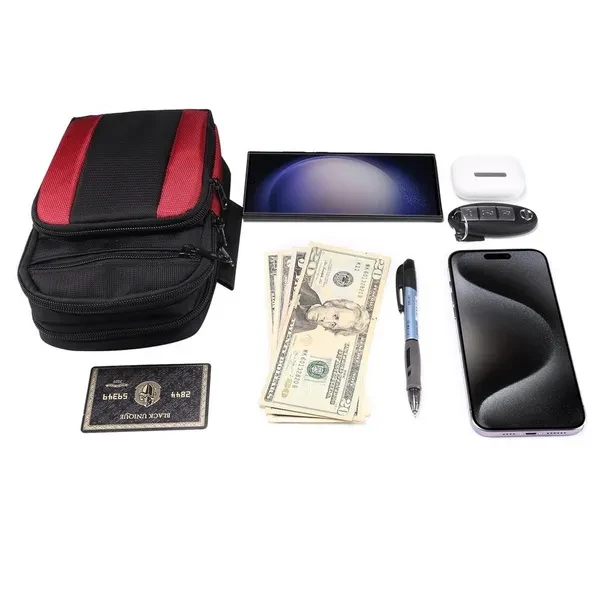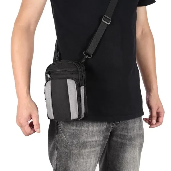 Casual slant shoulder bag mobile phone pouch/sports hanging waist bag, 7.2 inch mobile phone universal, size 12cm*19cm*5cm: 600D nylon fabric, lining: polyester-cotton material, 3 kinds of colour: 3 kinds of colour: black, red, light grey. With shoulder strap and mountaineering buckle The shoulder strap is 137cm in length with adjustable buckle, Convenient for travelling. (Front pocket size 12*13.5CM) Suitable for placing small mobile phones, change, various cards, cigarettes, mobile power, headphone input cable and keys and other small items, is a durable and practical mobile phone bag! Daily leisure outing, a bag of easy and thoughtful solution! Back belt buckle practical size 5cm * 8cm. Suitable for all mobile phones up to 7.2 inches Outdoor Phone Pouch 4 Pockets 4 Zip Wallet Pouch Belt Clip Pouch . Can fit following phones: 1.for iphone 16plus/16pro max/15plus/15pro max/14pro max/14Plus/13pro max/12Pro Max 16/16 Pro/15/15pro/14/14pro/13/13pro/12/12pro/iphone11/11 Pro Max/XS Max/XR/8P/7P/6P,etc. 2.for Samsung Galaxy s24 ultra/s23 ultra/s22 ultra/s21 ultra/s24+/s23+/s22+/s21+/S23 FE/s20 ultra/s20+/note22ultra/Note 20 /note20 ultra/A55/A53/A35/A25/A15/A32/A22/A12/A71/A70/M51/A70S/A71 5G/A51 5G/A80 /A90/A20S/ A34/A14/A13/A22/A21/A20/A30/A54/A51/A50/A50S/A60/M31S/M30S,etc. 3.for Huawei honor 50pro/50se/honor 50/honor Magic4/p60/p60pro/mate60pro/mate60/mate50/mate40pro/mate40/p40lite/p40/p50/p50pro/p40pro/p30pro/nova5/5i/5i pro/4/3/3i/p20 pro/p8/p9/p10 PLUS/mate30/30 Pro/ mate7/mate8/mate10/10pro,etc. 4.for Xiaomi 10T/10Tpro/10T lite/10/Redmi 10X 5G/note9promax/Redmi 9c/9A/k30/k30pro/Redmi note8/note8pro/note8T/note7/note7pro,etc.