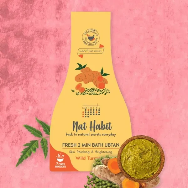 Nat Habit Fresh Wild Turmeric Bath Ubtan, 2 Minute Body Scrub For Accelerated Detan, Pigmentation Relief Body Acne Control Whitehead Clearance, Ayurvedic Inspired, 80 g Each (Pack of 2)