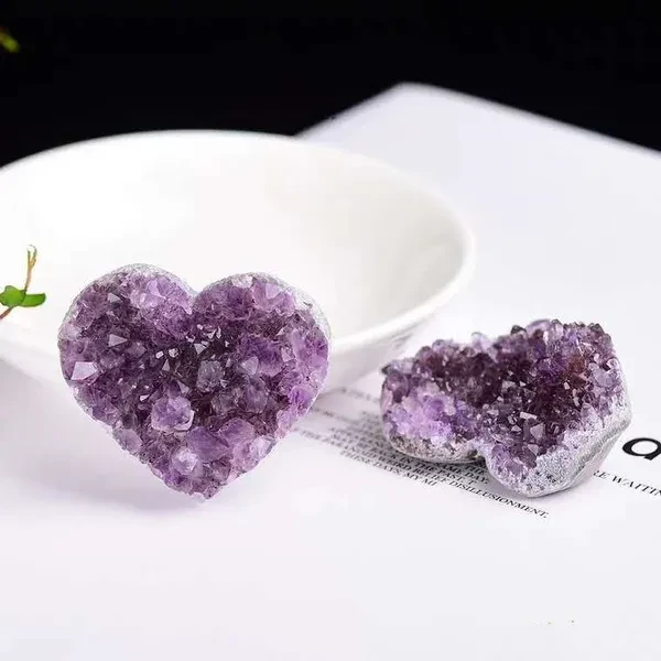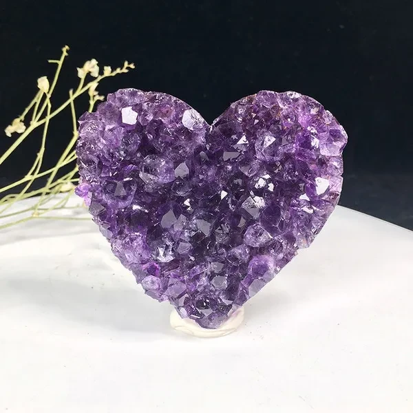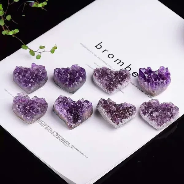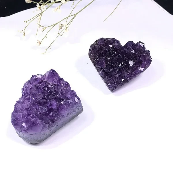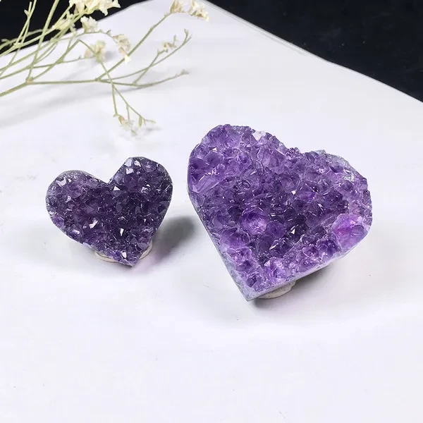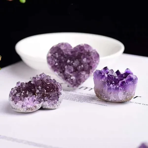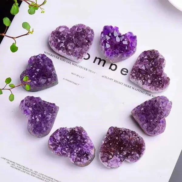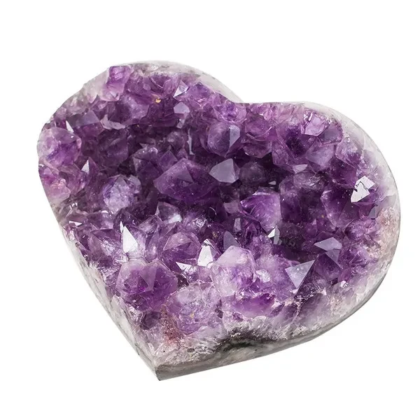 Natural Crystal Amethyst Quartz Geode Heart Stone Purple Gemstone Cluster Crystal Crafts for Treasure Gifts