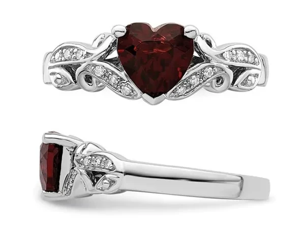 Natural Garnet Promise Heart Ring 1.25 Carat (ctw) in Sterling Silver This classic heart promise ring features a beautiful rich red natural garnet in a rhodium plated heart shaped sleek sterling silver setting. Garnets are the featured birthstone of the month of January. Beautifully crafted in 0.925 sterling silver with a Polished Finish Stone Type: Garnet; Color: Red; 1.25 CTW; Quantity: 1; Heart Cut; Heart Shape; Natural; Prong Setting This item ships directly from the USA. If you are not completely satisfied, simply return for a 100% refund Garnet Gemstone is the Birthstone for the Month of January This Heart Ring is the perfect gift for any birthday, anniversary, holidays, thank you, thinking of you, or for any reason at all SKU: 68QGG0592GA-P