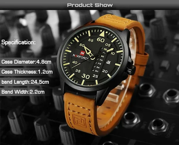 - Style: Casual,Fashion,Luxury - 100% New brand with tags & High Quality - Analog, Date Calendar Display - 30M Waterproof,3ATM - Case Diameter: 4.7 cm - Case Thinkness: 1.3 cm - Band Length: 24.5 cm - Band Width: 2.2 cm - Watch Weight: 72 g - 1 Year Warranty
