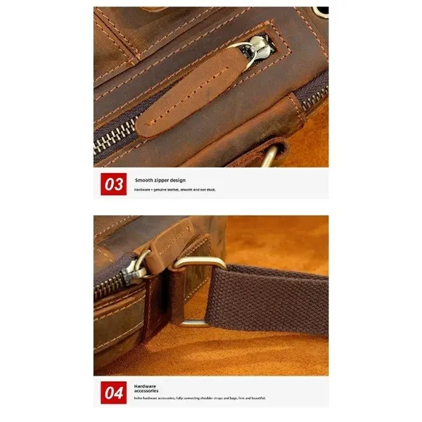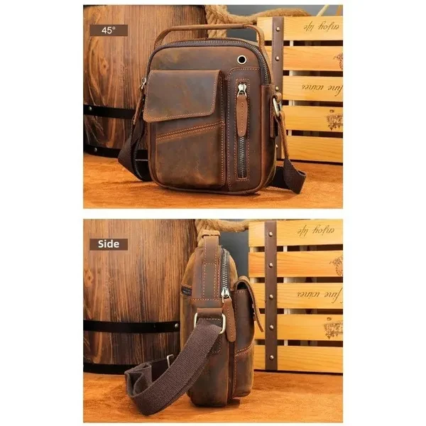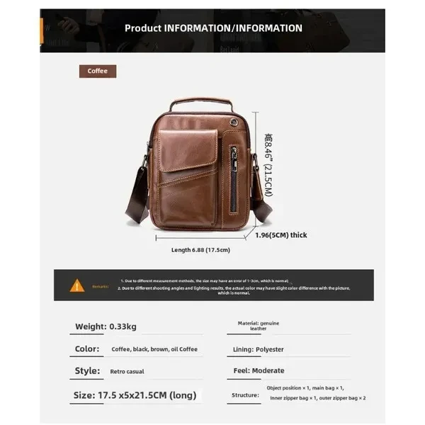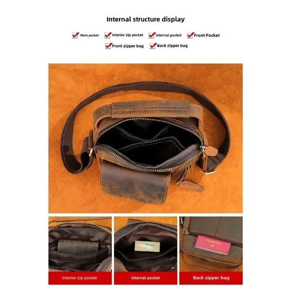 Exterior : Flap Pocket Interior : Interior Slot Pocket,Cell Phone Pocket,Interior Zipper Pocket,Interior Key Chain Holder,Interior Compartment Hardness : SOFT Closure Type : zipper Pattern Type : Solid Gender : MEN Style : vintage Lining Material : POLYESTER Main Material : Genuine leather Shape : Box