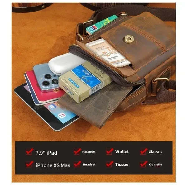New Casual Men's Cow Leather Shoulder Bag Large Capacity Male Crossbody Bag For Men