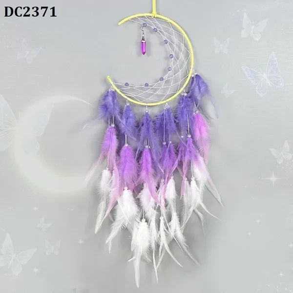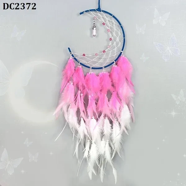 New Colorful Peacock Feather Dream Catcher Home Garden Decorative Crescent Dream Catcher Handicraft Home Living Room Bedroom Wall Hanging Decoration Tree of Life Dreamcatcher Wind Chimes
