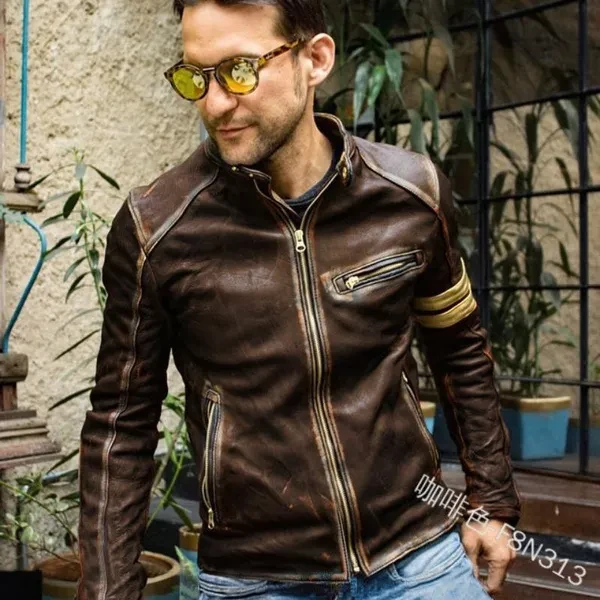 New Fashion Slim Fit Standing Collar Motorcycle Leather Coat Men's Jacket Fashion Men's Wear