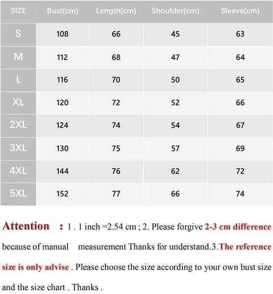 *Men's jacket coat *Gender: Male Female *style: Casual *Whether with a cap: with a cap *Color: Pictured *Size: XS-5XL Note: 1: The color may be slightly different due to the setting of the computer monitor. 2: Due to the difference in measurement methods, please allow a size deviation of 1-2 cm